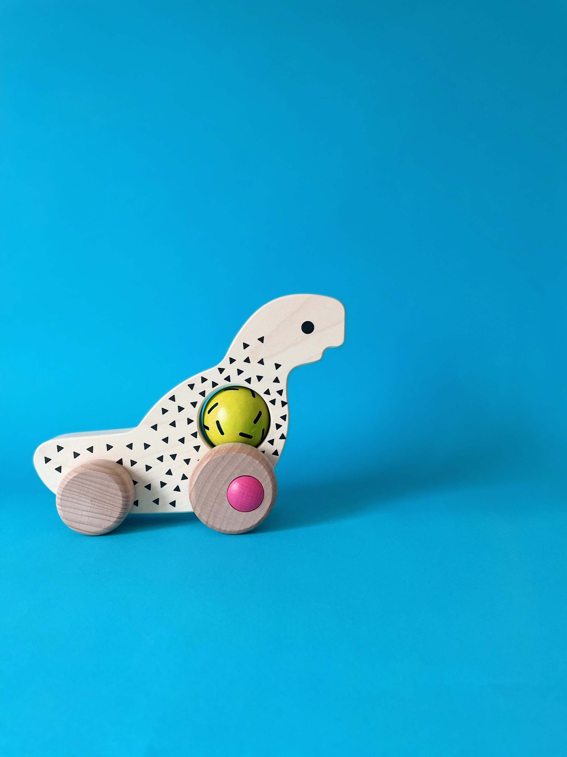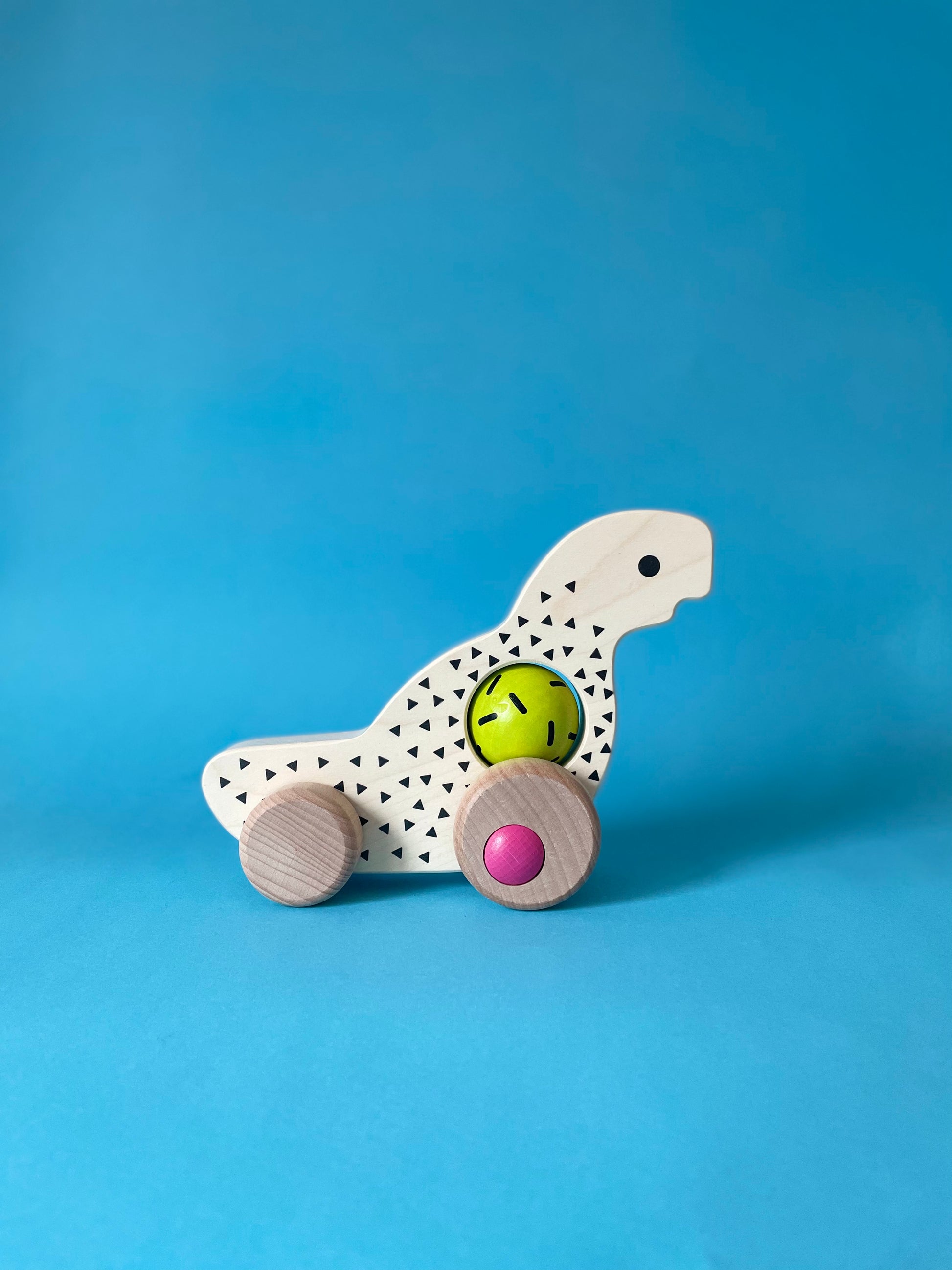Дървеният динозавър на колела от Vintage серията на BAJO e играчка с характер и история! Този очарователен динозавър съчетава класически дизайн с интерактивен елемент – въртящо се топче в коремчето, което прави играта още по-интересна.